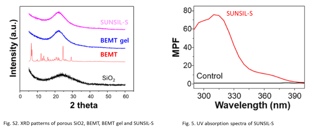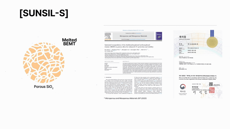 Through this technology, SUNSIL-S can stably incorporate up to 30 wt% of BEMT, while effectively preventing precipitation or leakage and ensuring uniform dispersion within the pores.