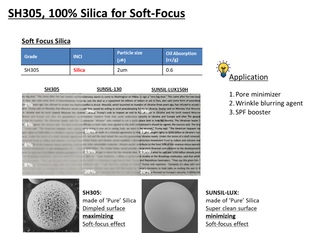 SH305: Light-Reflecting Silica for Soft Focus and SPF Boost